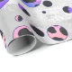 Patrón de impresión de animales Dalmatianos de color rosa, morado y negro, creado por Imagine That! El diseño de electrónica, accesorios y regalos presenta nuestro patrón original de impresión animal con nuestro toque único de textura y pizzería en negro y rosa gradado y morado todo basado en los puntos blanco y negro de un perro dálmata. Descanse hoy y acceda con nuestro colorido y moderno diseño de animales manchados. Diseños de puntogramas de polka de tamaño variado en los años 50 en nuestros colores brillantes con nuestra textura característica.