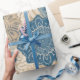 Indigo Tan Boho Floral combina el estilo bohemio relajado con el encanto costero. Radiantes soles y florales intrincados se unen en una paleta tranquilizadora de azules de mezclilla, beige arenoso, marfil suave y añil profundo.