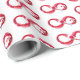 Símbolo infinito de flujo continuo de vino tinto vertiendo en vidrio de vidrio sobre fondo blanco.