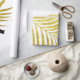 Hermosa hoja de palma dorada en fondo blanco sólido y inicial monogramada que se puede editar y personalizar como desees.