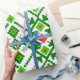 Este papel de envoltura tiene un diseño de inspiración ucraniana de formas de diamante, círculos y cruces. Está diseñado después de su arte folclórico.