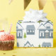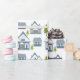 Invierno inmaculado Feliz Navidad paisaje casas grises árboles verdes fondo blanco
