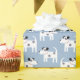 Cute and adorable Parson Jack Russell Terrier dog pattern on a blue background.