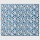 Una imagen de un perro Jack Russell Terrier es la característica del patrón en este papel de envoltura de regalo para todas las ocasiones. El perro se sienta en medio de un patrón de huellas de pata negra y huesos blancos, y se repite en un fondo azul medio.