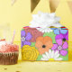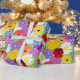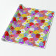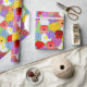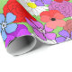 Este papel de envoltura tiene un diseño de primavera de rosas dispersos, panes, margaritas y guijarros.