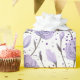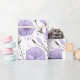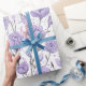 Papel envuelto con flores abstractas púrpura texturizadas y hojas verdes marrones, primavera pastel o suavidad veraniega romántico patrón floral. Pintura botánica de aceite digital. Papel de envolver de flor floral botany. Colección Purple Garden.