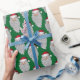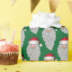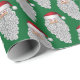 Un patrón alegre y repetitivo de Santa con barba larga y rizada sobre un fondo verde.