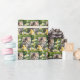 Cuidada gatita de mesa con pato amarillo en las margaritas blancas de verano y césped