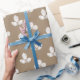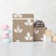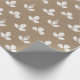 Papel rústico de envoltura Kraft con un patrón de trébol blanco de tres hojas sobre un fondo color Kraft.