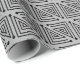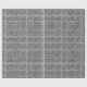 Este papel de regalo tiene un diseño Art Déco hecho a partir de un ángulo recto con un laberinto dentro en negro sobre un fondo gris.
