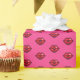Envoltura de regalo para tu El día de San Valentín o regalos románticos divertidos, con un simple icono de labios rojos o besos, en un estilo de arte de píxeles bloqueados, arreglado en un patrón de repetición de media caída sobre un fondo rosado. Una imagen divertida y romántica para los aficionados a los viejos juegos y a las imágenes retro de 8 bits; una alternativa interesante sobre un símbolo clásico del amor o el romance.