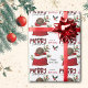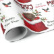 El patrón repetido en este lindo Navidad envolviendo papel es una imagen de un adorable cachorro de la recuperación de chocolate asomando una bolsa de regalo de la Navidad roja y blanca. Detrás de él hay una espiral de bayas rojas y sagradas. Un pájaro rojo y negro bullfinch está a punto de aterrizar. El estilizado texto rojo y negro de chapa búfala dice MERRY CHRISTMAS", y "Feliz Año Nuevo" está en verde oscuro. Su firma está en dos campos para que usted lo personalizar. Asegúrese de ver las etiquetas de regalo coincidentes.