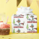 Un lindo dachshund vestido con un suéter y un gorra de punto se para al lado de un alto y delgado árbol de Navidad decorado con pelotas de tenis y un regalo largo. Juego de palabras con la imagen de las palabras "Yo añoro a los Navidades". Diseño original de Christie Black de Creations from the Heart.