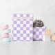 Resumen de arte digital de lavanda y cuadrados blancos en una formación a cuadros.