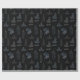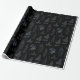 Papel negro de envoltura floral con un patrón de hojas de helecho y florales en un patrón de repetición negro moderado