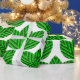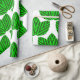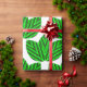 Este papel de envoltura tiene un diseño escandinavo de tríos de hojas que se repite a lo largo del diseño en tres tonos de verde.