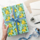 Papel De Regalo Lemones, El Fondo Azul Vibrante No Tiene Percanto.