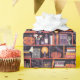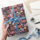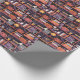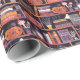 Papel de envoltura de Halloween con un patrón con una biblioteca espeluznante, lámparas jack-o' y murciélagos. Perfecto para envolver favores de fiesta o regalos de cumpleaños de octubre. Obra original de Marketa Stengl.