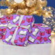 Patrón de bonito de libros de biblioteca rosa y blanco sobre un fondo lila. Perfecto para bibliotecarios escolares, profesores de aula y cumpleaños de orugas