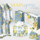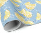 Papel De Regalo Limoncitos y flores en acuarela azul