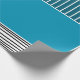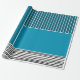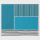 Este papel envolvente tiene un diseño geométrico de un gran rectángulo verde azulado en la esquina superior izquierda, rayas verde azuladas más oscuras en la esquina superior derecha, un rectángulo verde azulado más pequeño más ligero debajo de las rayas y líneas negras en la parte inferior. Si te gusta el diseño pero prefieres colores diferentes, envíame un mensaje.