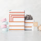 Este papel de envoltura tiene un diseño art deco de líneas en morado, rosa, naranja y azul.