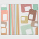 Este papel de envoltura tiene un diseño moderno de mediados de siglo de líneas y rectángulos en tonos retro de rojo, amarillo, naranja, azul, verde, marrón y rosa.