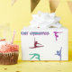 ¡Loco por la gimnasia envolviendo papel con el nombre de su gimnasta! ¡Cargados de coloridas siluetas de gimnasia por todas partes!