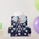 Este diseño presenta un copo de nieve blanco y azul, copos de nieve de colores y muchos hombres de nieve vestidos para una temporada de Navidades fríos. Se agregó un purpurina a este diseño. Este envoltorio de regalo para Navidades viene en una variedad de colores, estilos y tamaños.