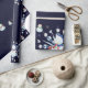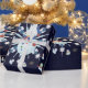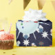 Este diseño presenta un copo de nieve blanco y azul, copos de nieve de colores y muchos hombres de nieve vestidos para una temporada de Navidades fríos. Se agregó un purpurina a este diseño. Este envoltorio de regalo para Navidades viene en una variedad de colores, estilos y tamaños.