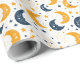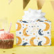 Un fabuloso motivo de luna azul y amarilla y estrellas.