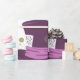 Tapa de terciopelo púrpura preparada para el sombrerero.