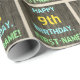 Este divertido diseño de papel de envoltura con temática de cumpleaños incluye un mensaje como "¡FELIZ CUMPLEAÑOS, NOMBRE PRIMERO!", donde el nombre se puede personalizar. El fondo está decorado con un estilo rústico, marrón y falso de aspecto de grano de madera. El texto del mensaje personalizado presenta colores como azul, amarillo y verde, y tiene un aspecto inspirado en el de las letras pintadas y estampadas. El envolvimiento de papel como este podría ser usado cuando se le dan regalos de cumpleaños a alguien que está celebrando su noveno cumpleaños. [~Z0000293]