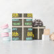 Este divertido diseño de papel de envoltura con temática de cumpleaños incluye un mensaje como "¡FELIZ 88º CUMPLEAÑOS, NOMBRE PRIMERO!", donde el nombre se puede personalizar. El fondo está decorado con un estilo rústico, marrón y falso de aspecto de grano de madera. El texto del mensaje de personalizable presenta colores como azul, amarillo y verde, y tiene un aspecto inspirado en el de las letras pintadas y estampadas. El envolvimiento de papel como este podría ser usado cuando se le dan regalos de cumpleaños a alguien que está celebrando su ochenta y ocho cumpleaños. [~Z0000293]