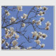 El diseño presenta una hermosa imagen de flores de magnolia blanca en flor contra un fondo azul cielo.