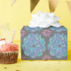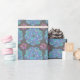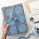 Patrón de mandala de flor de estilo geométrico en tonos de azules y púrpura