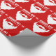 Navidades envolviendo papel regalo en rojo y blanco cálido. Lee MANOS APAGADAS hasta el 25 de diciembre, divertido y atrevido barba de navidad de Papá Noel / padre y una mano sin toques firma gráficos con patrones de Navidad imprimir. Gráficos y diseño de Sarah Trett.