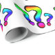 Diseño con divertidos signos de interrogación con un relleno degradado arco iris y contornos negros pesados.