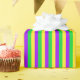 Papel envuelto con un patrón rayado verde, amarillo y violeta. ¡Personalizable. Ideal para el Mardi Gras.