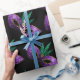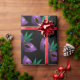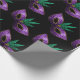 Papel envuelto festivo Bella máscara de Mardi Gras en Péssion Purple con Aluminio dorado amarillo y plumas verde esmeralda sobre negro. ¡Usamos la foto del purpurina de chispas!