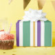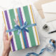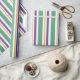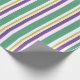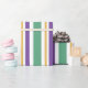 Un patrón limpio y elegante con rayas verticales alternando tonos morados, verdes y dorados, simbolizando los colores festivos de la celebración.