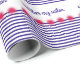 Divertido, lindo y personalizable con rayas azules y pompas rojas.