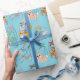 Este lindo papel de envoltura presenta un patrón de marionetas de marioneta animal adorables contra un fondo azul claro. Hay una marioneta de gatos, una marioneta de perros, una marioneta de cabras, una marioneta de aves, una marioneta de conejo y una marioneta de elefantes.