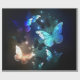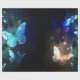 Fabuloso, brillante, azul y amarillo, mariposa nocturna sobre fondo oscuro.