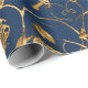 Papel De Regalo Mariposas azules metálicas con vinos de oro