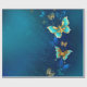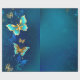 Papel De Regalo Mariposas doradas sobre fondo azul
