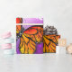 Naranja, mariposas monarcas detalladas sobre la luz, púrpura, pintoresca, fondo pintado.
