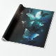 Mariposas brillantes nocturnas de menta sobre fondo abstracto negro.