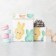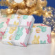 Este papel de envolver de regalo de vacaciones presenta un tema clásico de los dulces de Pascua sobre un fondo blanco. Los dulces dulces dulces y coloridos del conejito de Pascua están embaldosados en la envoltura de regalo, con huevos decorados.