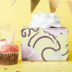 Un patrón repetido de flores de malvavisco y puff de malvavisco en rosa suave y cremas con un fondo giratorio magenta profundo. ¡Un divertido juego de palabras para cualquier ocasión!